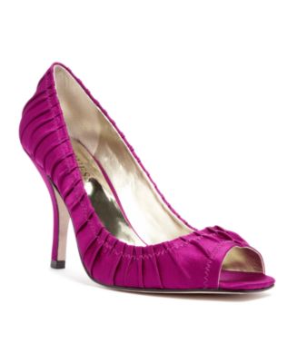 This sassy Pilsner Peep-Toe Pump from Guess will definitely be noticed when you head out for the night. The eye-catching shiny magenta satin is rippled with pintucked pleats with zigzag stitching for detail and a sexy 3 1/2 inch heel. $99. Shop here.